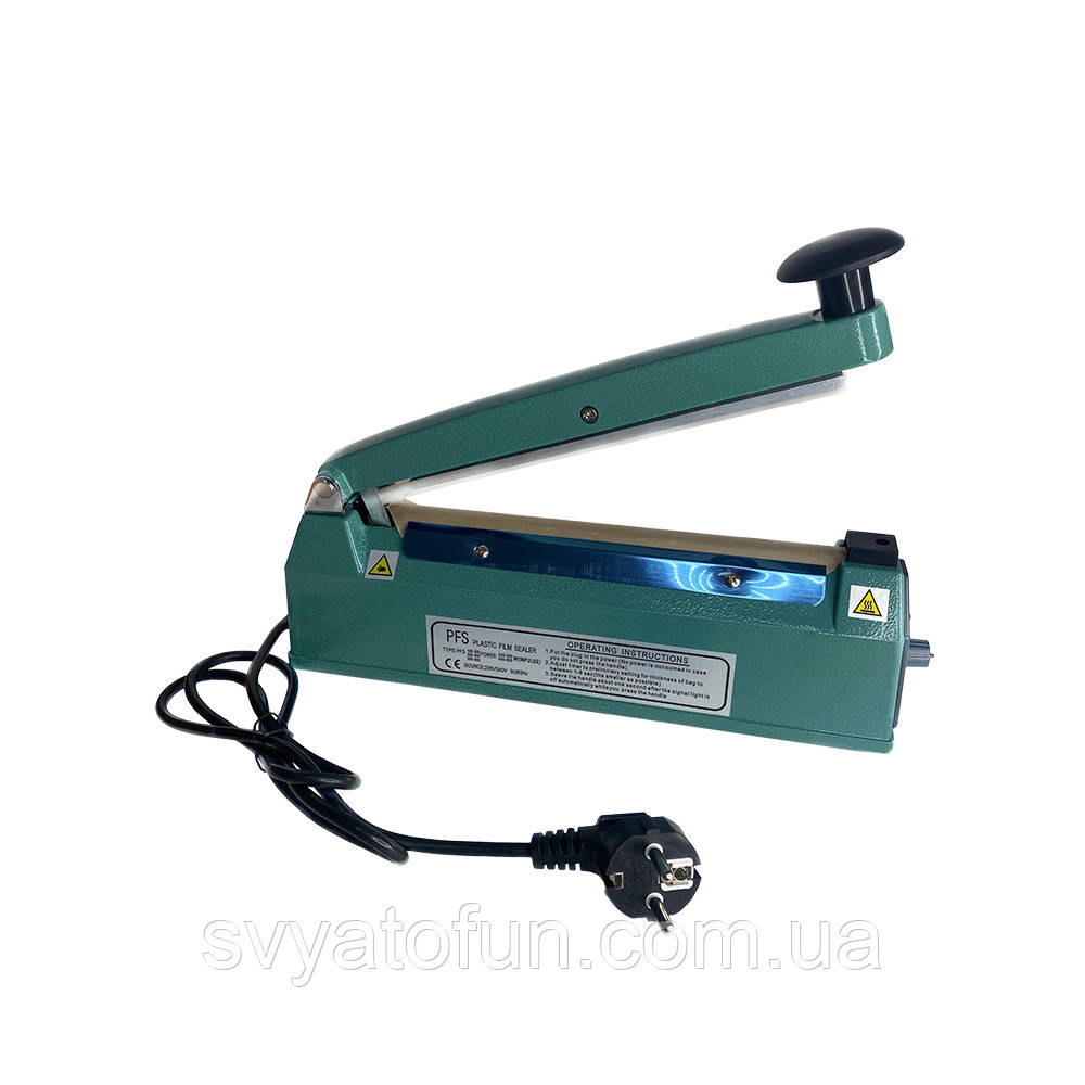 Електричний зварювач пакетів PFS-200 - ручний настільний зварювач полімерної плівки. Використовується для запаювання мішків і пакетів (формування шва) з різних видів плівки поліетиленової, поліпропіленової, а також ламинорованной паперу в процесі пакування.