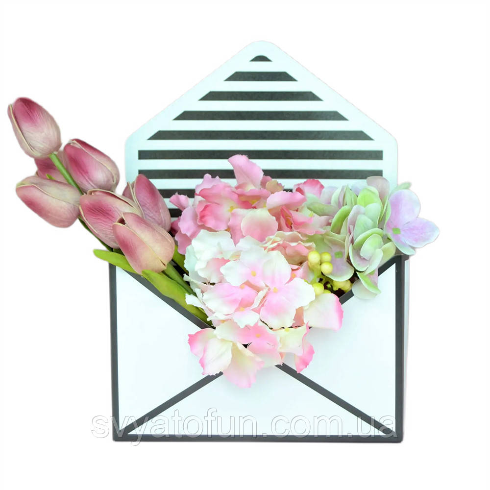 Конверти для квітів чорно-білі – це ідеальне рішення для створення вишуканих квіткових композицій та оригінальних подарункових наборів. Виготовлені з міцного картону з двостороннім ламінуванням, ці конверти є водостійкими та надійними в експлуатації, що робить їх чудовим вибором для флористів.